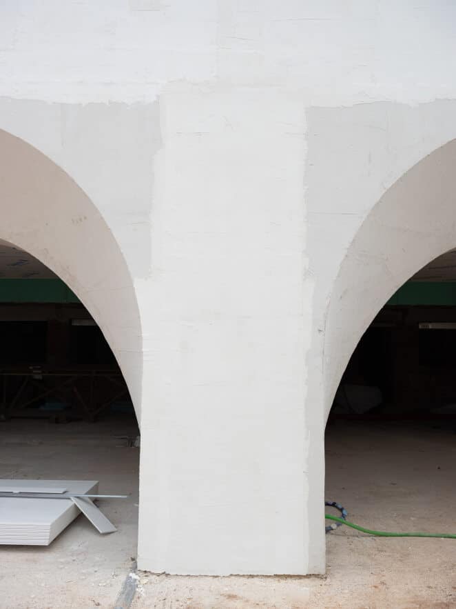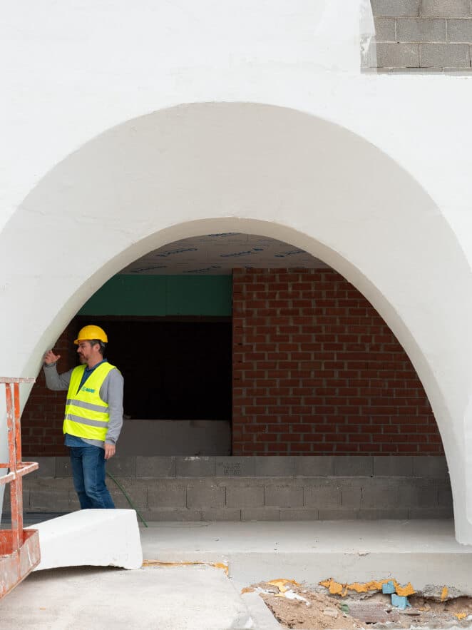 Este material ligero no solo permite un montaje ágil, sino que también asegura que las estructuras no sobrecarguen la edificación. La versatilidad del porex facilita la creación de formas complejas con un acabado premium, aplicando un mortero flexible tipo SATE que garantiza una estética de alta calidad y durabilidad.